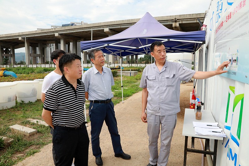 6月12日,陜西環(huán)保集團黨委書記、董事長熊良虎在集團西安市江村溝垃圾滲濾液全流程處理中試項目視察調(diào)研時指出,大膽探索、科學(xué)組織、周密部署,立即開展72小時連續(xù)運行試驗,迅速組織召開現(xiàn)場會推廣“正滲透(FO)系統(tǒng)+低溫蒸發(fā)結(jié)晶(LTEC)系統(tǒng)”處理技術(shù),徹底把垃圾滲濾液這個“最臟的水、最難的水”達標處理好,為1300萬西安市民營造良好的生態(tài)環(huán)境。集團公司總工程師顏昊一同調(diào)研。
