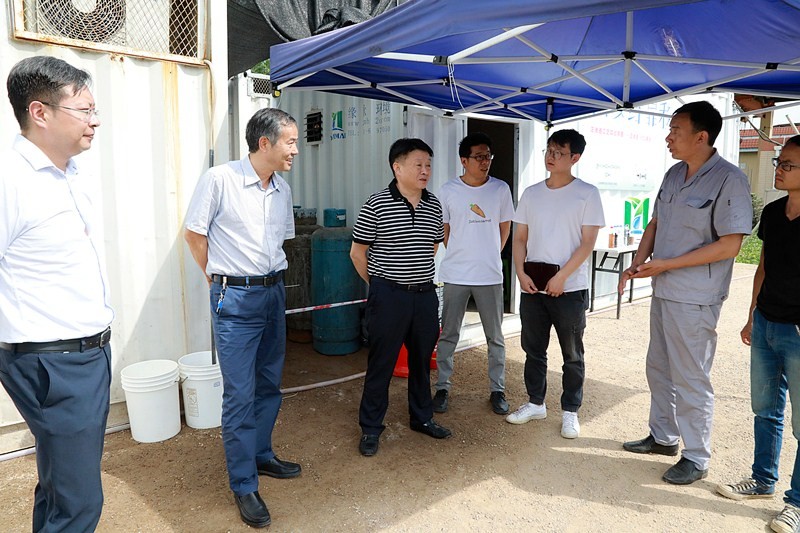 在項目現(xiàn)場,兩個集裝箱大小的設(shè)備是此次中試項目的“主力軍”,“正滲透(FO)系統(tǒng)+低溫蒸發(fā)結(jié)晶(LTEC)系統(tǒng)”技術(shù)又是主力里的“王牌”,目前每天有約20噸江村溝垃圾滲濾液廠MBR產(chǎn)水被有效處理,截至6月12日已處理高濃度MBR產(chǎn)水149噸,結(jié)晶固體鹽約150千克。熊良虎仔細察看滲濾液處理工藝、中試設(shè)備運轉(zhuǎn)等情況,不時詢問系統(tǒng)運行處理過程細節(jié),叮囑現(xiàn)場工作人員注意安全,嚴謹有序開展好中試工作。