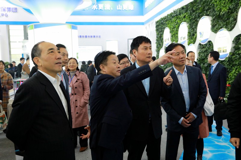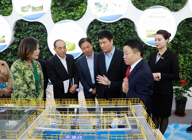 開幕式后,郭大為一行參觀了陜西環(huán)保集團“深入推進四大保衛(wèi)戰(zhàn),勇做陜西污染防治排頭兵”主題展區(qū)。在煤礦疏干水綜合處置項目模型、“一縣(區(qū))一策”精準治霾、垂直流迷宮(VFL)污水處理技術演示模型、智慧環(huán)保綜合平臺等環(huán)保設施設備展示區(qū)前,詳細聽取了熊良虎關于集團圍繞全省“四大保衛(wèi)戰(zhàn)”所做工作情況的介紹。郭大為對環(huán)保集團五年來取得的發(fā)展成就給予高度評價,對集團提升自主研發(fā)、加大吸收引進國際先進技術助力全省生態(tài)環(huán)境持續(xù)向好所作的努力表示贊賞。
