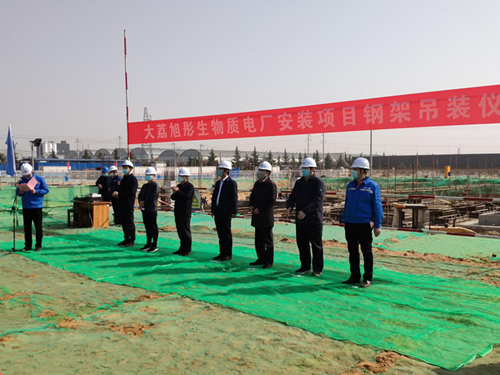 儀式上,黃國全代表集團公司對綠色能源公司大荔生物質發電項目完成又一個里程碑表示熱烈祝賀,同時要求在今后工作中要繼續嚴格落實高標準、高要求,強化質量管控,落實安全措施,實現文明施工,加快項目進度,確保按時竣工、早日投產。儀式最后,隨著顧峰“開始吊裝”的口令,長約10米、2噸重的第一根鋼架緩緩升起,并順利就位,吊裝工作正式啟動。