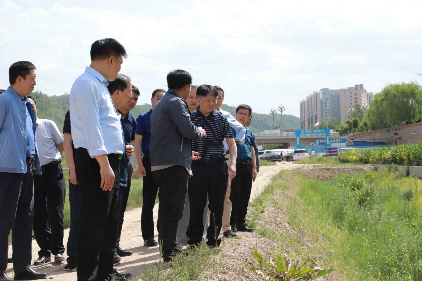 19日中午一到延安,熊良虎一行在看望慰問延安分公司干部職工后,便馬不停蹄來到生態公司延河陽柳橋至朱家溝段濕地修復工程項目,實地察看了項目施工進度、工程質量等,與施工人員就項目建設情況與市民群眾進行了深入交流。