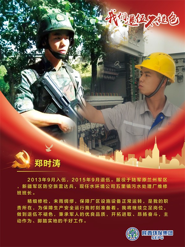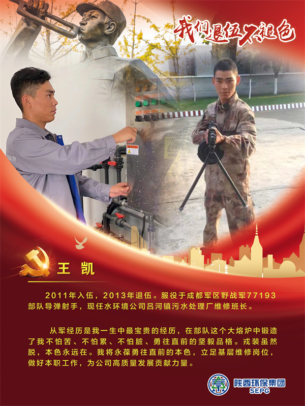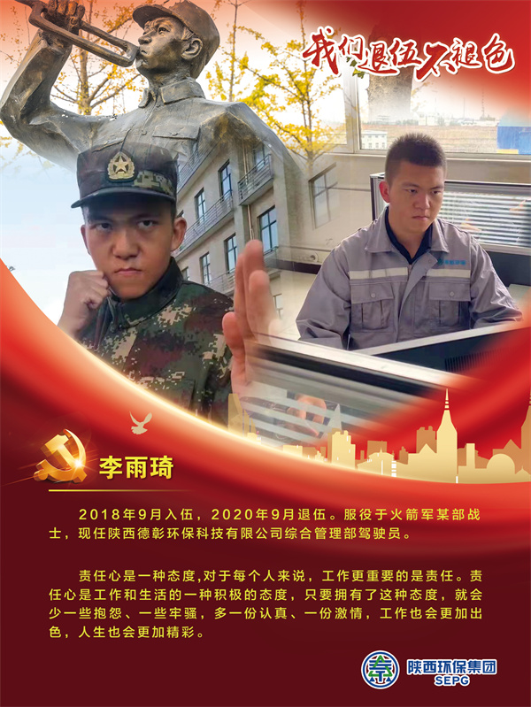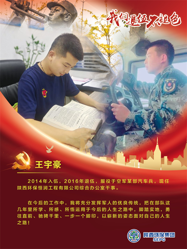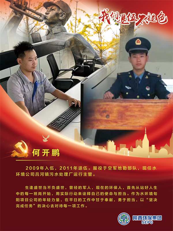 他們把青春的時光獻給軍營,揮灑青春、保家衛國,如今他們帶著軍人的一腔熱血和優良作風在陜西環保集團守護全省藍天、碧水、凈土的“保衛戰”里續寫輝煌,制服的顏色變了,但為民的初心永不褪色。戎裝在身,他們保家衛國;退役歸來,他們堅守崗位,用實際行動證明著退役不退志,退伍不退色。在第95個建軍節之際,陜西環保集團融媒體平臺用一張張海報向“老兵”致敬。