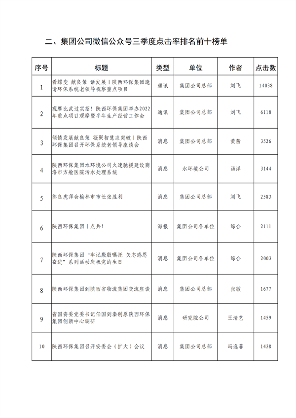 三季度,集團(tuán)融媒體平臺(tái)緊緊圍繞喜迎黨的二十大、重點(diǎn)項(xiàng)目建設(shè)等重點(diǎn)工作進(jìn)行宣傳報(bào)道,開展的“我們退伍不退色”主題稿件征集活動(dòng)被“學(xué)習(xí)強(qiáng)國(guó)”平臺(tái)采用,取得較好效果。三季度,融媒體平臺(tái)共計(jì)刊發(fā)稿件297篇。總體來看,各單位對(duì)信息工作重視程度有所提升,但仍有部分單位對(duì)企業(yè)亮點(diǎn)特色工作、經(jīng)驗(yàn)成效等方面挖掘不深,信息質(zhì)量不高。其中,水環(huán)境公司、中圣公司等單位能夠堅(jiān)持總結(jié)工作亮點(diǎn)、經(jīng)驗(yàn)成效,按期高質(zhì)量報(bào)送稿件,較好地發(fā)揮了表率帶頭作用。但仍有秦楓公司、油氣公司等單位對(duì)新聞稿件報(bào)送工作認(rèn)識(shí)不足、重視不夠,未按照集團(tuán)要求投稿且質(zhì)量較差。個(gè)別單位報(bào)送的信息抓不住主題和重點(diǎn),信息內(nèi)容單一、表述不規(guī)范,大部分信息為簡(jiǎn)單的會(huì)議總結(jié),缺乏加工提煉,應(yīng)付交差的問題較為突出。