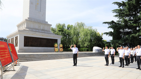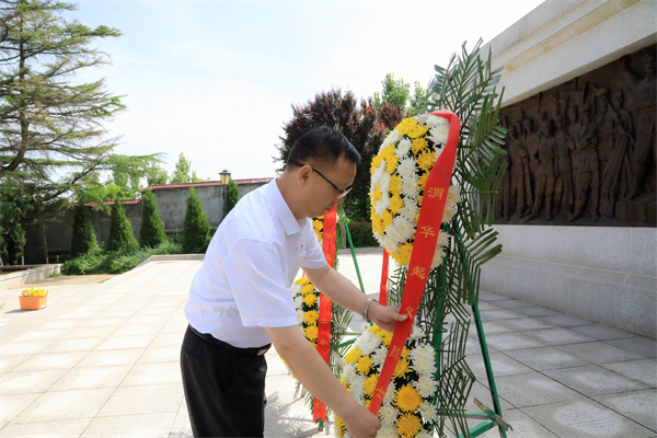 蒼松肅立,翠柏靜哀,以中共陜西環(huán)保產(chǎn)業(yè)集團(tuán)有限責(zé)任公司委員會(huì)、陜西環(huán)保產(chǎn)業(yè)集團(tuán)有限責(zé)任公司名義敬獻(xiàn)的兩個(gè)花籃一字排開,寄托著對(duì)革命先烈的深切緬懷和崇高敬意。集團(tuán)公司黨委書記郝軍亮緩步上前,仔細(xì)整理花籃緞帶。現(xiàn)場(chǎng)黨員面向紀(jì)念碑鞠躬致敬,集體繞行瞻仰渭華起義烈士紀(jì)念碑。隨后,大家走進(jìn)渭華起義陳列大廳,跟隨講解員的講解,從渭華起義爆發(fā)的歷史背景、選址原因、準(zhǔn)備工作、主要經(jīng)過等方面追憶崢嶸歲月。在一張張照片、一份份資料、一件件實(shí)物前,大家不時(shí)駐足觀看、交流討論,強(qiáng)烈感受革命先烈們?yōu)榱嗣褡濯?dú)立、人民解放拋頭顱、灑熱血的英雄氣概。