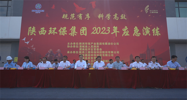 大美蒲城山清水秀,將相故里演練礪兵。為進一步強化安全生產責任意識,檢驗應急協同聯動機制,提升企業與地方聯合處置突發事故應急救援能力水平,6月29日,陜西環保集團聯合蒲城縣人民政府、渭南經濟技術開發區管委會在三秦環保股份公司下屬德昌公司舉辦以“規范有序 科學高效”為主題的2023年火災聯動應急演練。陜西環保集團黨委書記、董事長郝軍亮,黨委副書記、董事、總經理顧峰,蒲城縣縣長薛斌、副縣長王華中,渭南經濟技術開發區管委會主任史小鵬出席。陜西環保集團副總經理李釗主持。